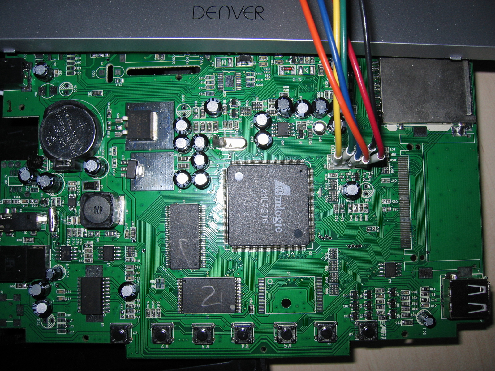 To upload code you will need dpf-407-jtag.tar.gz which includes a linux program for interfacing with the A4 inside the AML7216 using a JTAG. It also includes a little example on how to write some assembler code that can be uploaded. The JTAG program (arc.c) has the following features: