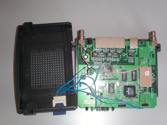 This project is for people who would like to add a little storage to their Linksys WRT54G router besides the builtin 4MB flash ram. What we will do is connect an SD card reader to some of the GPIO pins of the CPU found inside the Linksys and with the help of a little driver we can use as a block device from Linux. This means that if you compile your kernel for the Linksys with e.g. support for MSDOS partitions and VFAT you will be able to mount, read, write, partition and so on your normal SD cards. The speed obtainable for reading and writing seems to be about 200 KB/s.